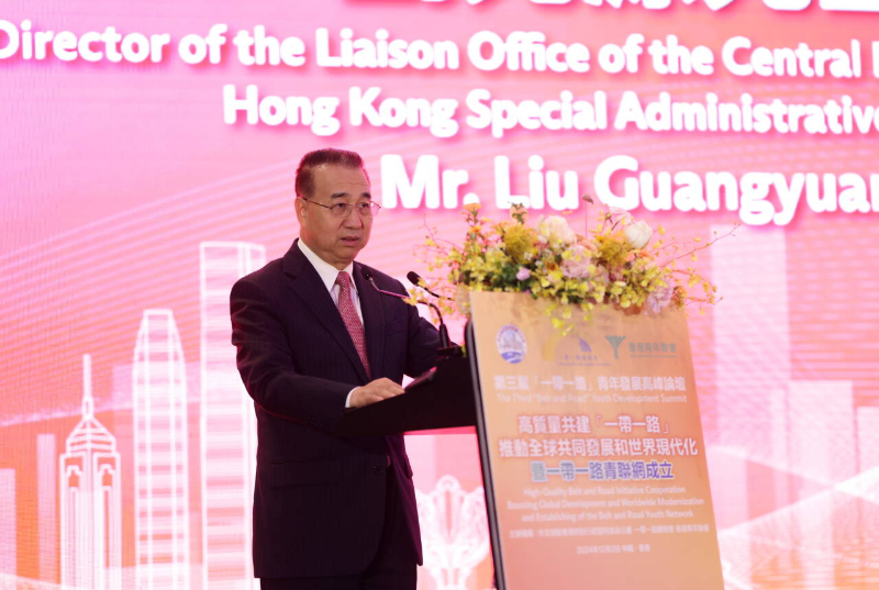 刘光源表示,共建“一带一路”,是习近平主席基于对人类前途命运的深邃思考,推动中国和世界合作共赢、共同发展的重大决策。十多年来,共建“一带一路”得民心、惠民生、利天下,已从理念转化为行动、从愿景转化为现实,取得了举世瞩目的丰硕成果,成为深受欢迎的国际公共产品和国际合作平台,为人类文明进步贡献了中国智慧、中国方案。香港作为共建“一带一路”的重要节点,联通祖国内地与“一带一路”沿线国家,在经贸交流合作、专业支援服务和人文交流方面具有独特地位和优势。刘光源分享了三个观点。一是认清新形势。世界之变、时代之变、历史之变正以前所未有的方式展开,单边主义和保护主义蔓延,全球发展面临诸多挑战。青年要坚定信心,保持战略定力,积极应对挑战,成为共建“一带一路”、推动历史前进的创造性力量。二是抓住新机遇。希望广大青年紧紧抓住高质量共建“一带一路”的时代机遇,脚踏实地,施展才华,广泛开展人文交流合作,为深化政策沟通、设施联通、贸易畅通、资金融通以及民心相通贡献青春力量。三是做出新成绩。无数青年将汗水与韶华献给了“一带一路”事业。青年要从新的历史起点再出发,携手同心、行而不辍,坚持胸怀天下的价值取向,坚定做共建“一带一路”的生力军和先锋队,让“一带一路”越来越繁荣、越走越宽广。