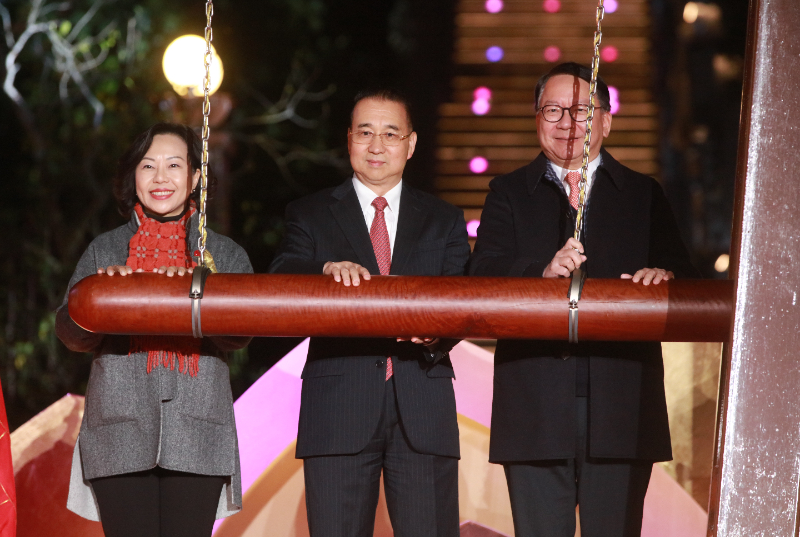 香港各宗教领袖和1000余名社会各界人士共同出席了此次元旦叩钟祈福活动,一起观看文艺表演、无人机汇演,参与跨年叩钟,共同为香港祈福、为国家祈福。