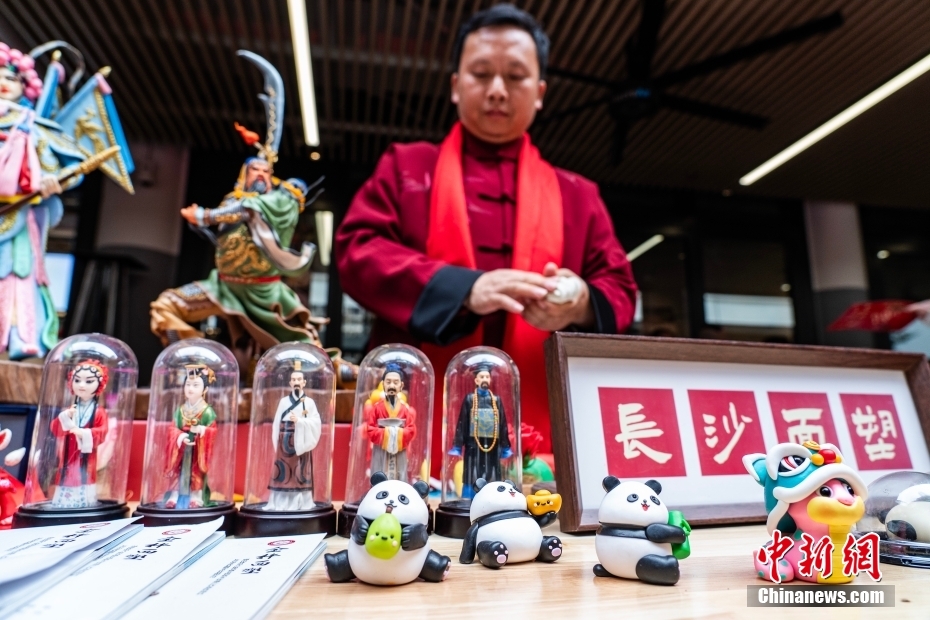 2月8日,主题为“非遗过大年 长沙最韵味”的2025年长沙非遗走进香港推广交流活动在香港中环街市举行,湘剧、面塑、剪纸等非物质文化遗产项目表演尽展长沙魅力。图为非遗传承人表演长沙面塑技艺。中新社记者 侯宇 摄
