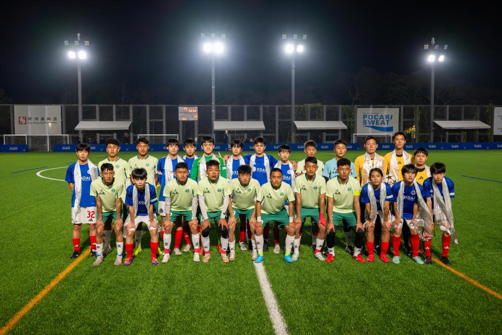 当天比赛香港球员身穿蓝色球衣,西藏球员则身穿绿色球衣,双方在场上积极拼抢,展现出精湛的足球技术和顽强的拼搏精神,引得观众们连连叫好。最终,香港东方体育会足球队U16梯队获胜,双方球员赛后合影留念。