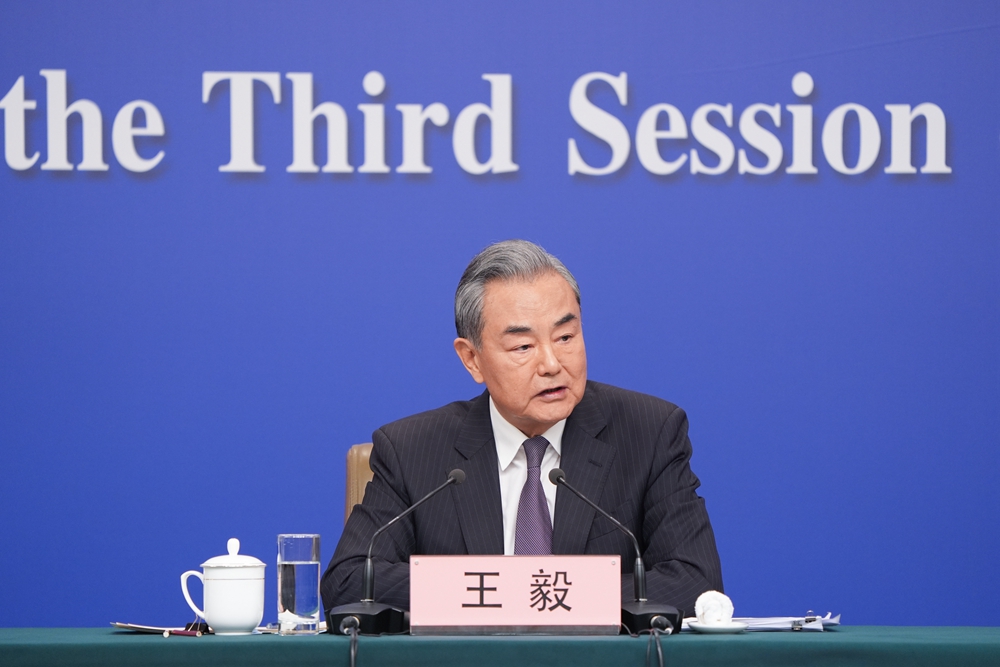 3月7日,十四届全国人大三次会议在梅地亚中心举行记者会。中共中央政治局委员、外交部长王毅就中国外交政策和对外关系回答中外记者提问。