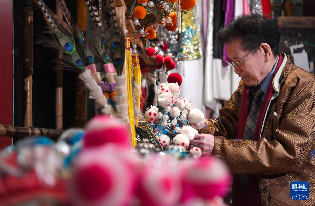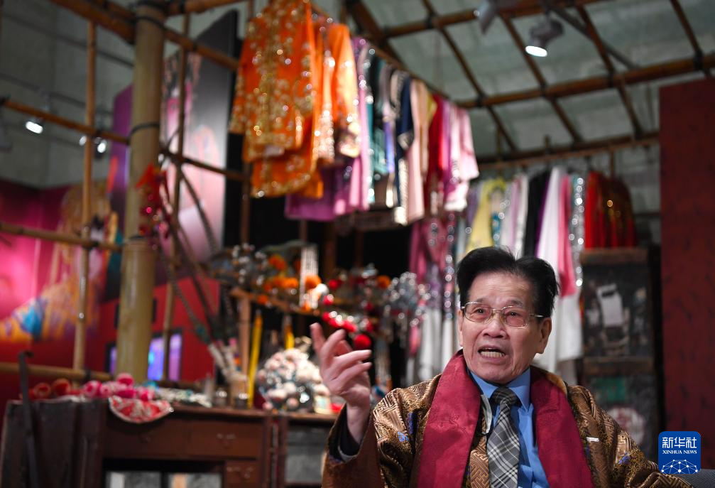 1月14日,香港粤剧帽饰老行尊陈国源在香港文化博物馆粤剧馆接受记者采访。 新华社记者 陈铎 摄