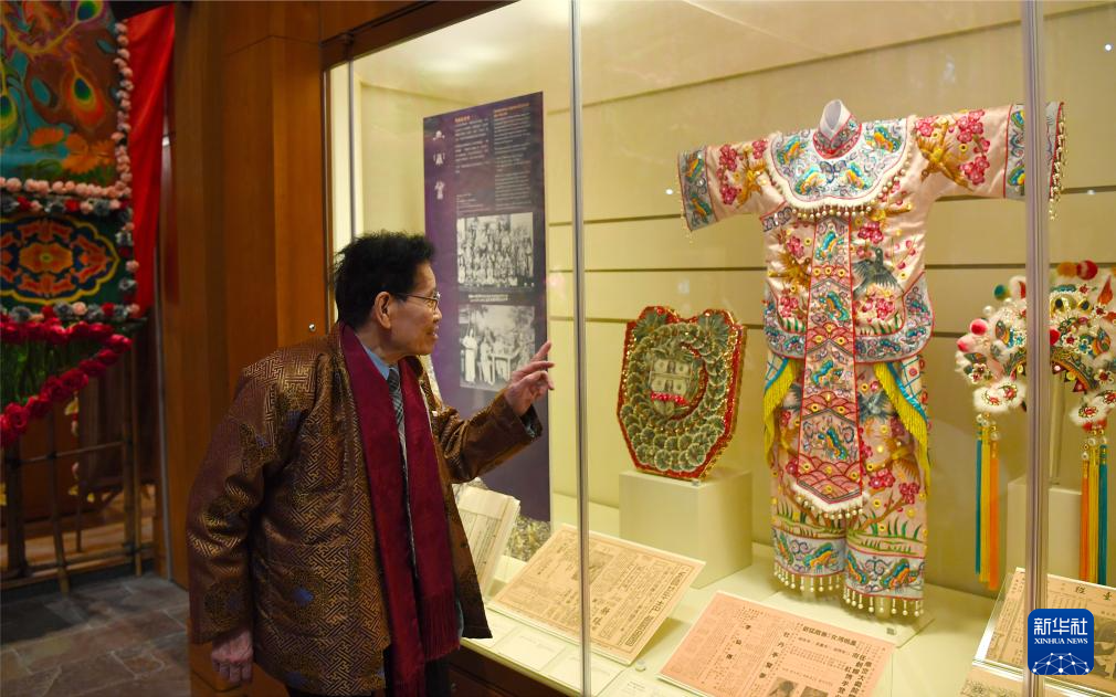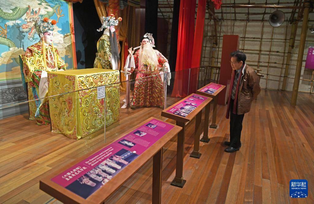 1月14日,香港粤剧帽饰老行尊陈国源在香港文化博物馆粤剧馆参观。 新华社记者 陈铎 摄