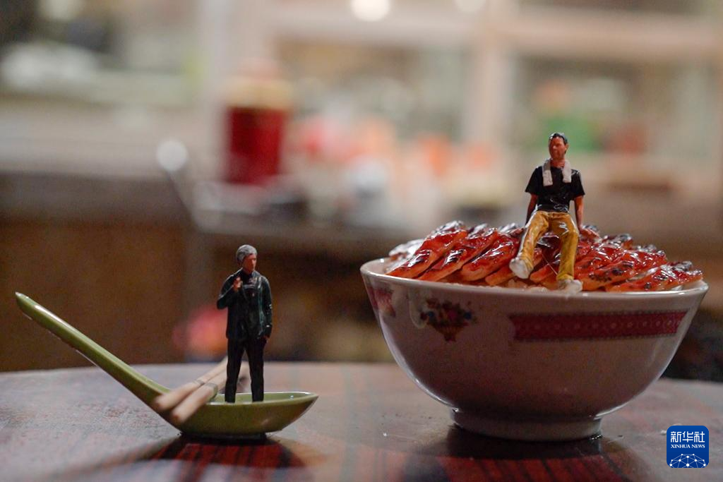 《九龙城寨之围城》电影展览内的电影主角微缩模型(2024年12月16日摄)。新华社发(龙镜伊 摄)