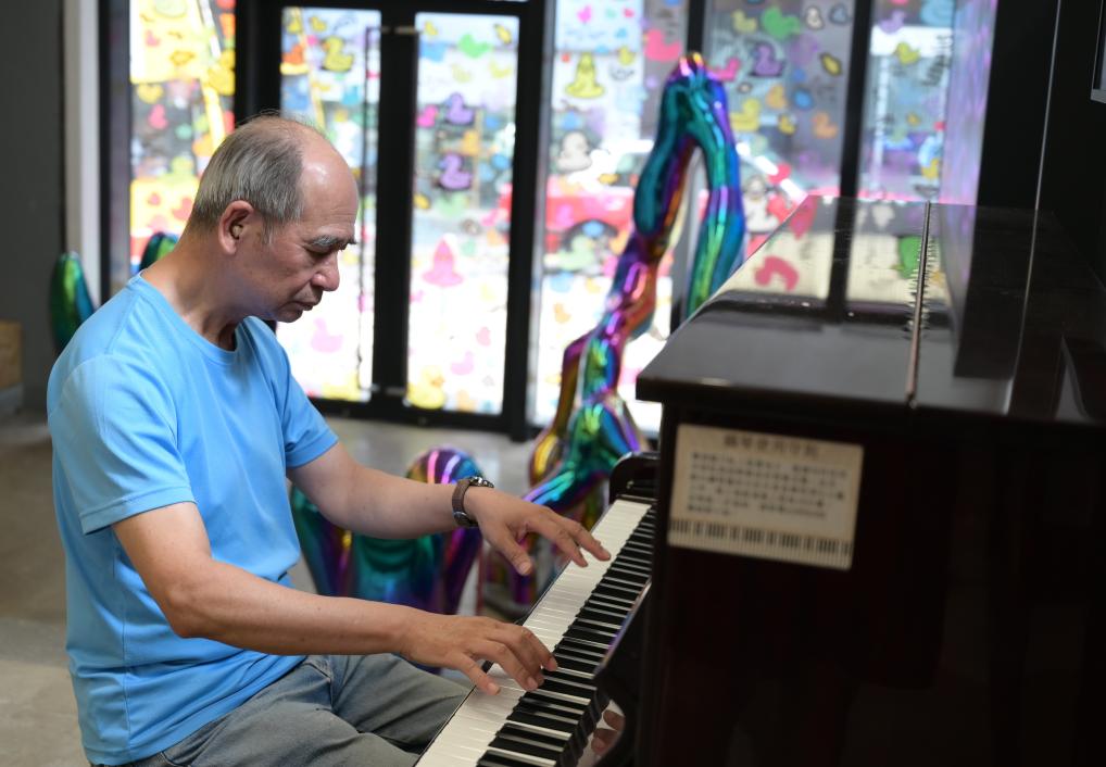 这是73岁的出租车司机李赞明退休生活中最惬意的休闲时光。“只要愿意,人人都能在‘共享钢琴’上弹奏一曲,把烦恼抛去,把情绪交给音乐。”