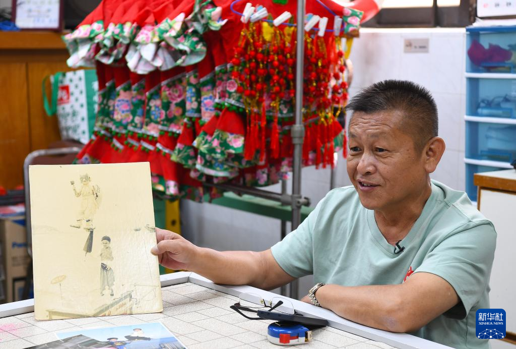 4月30日,徐心妤展示自己去年参加“飘色会景巡游”的照片。新华社记者 陈铎 摄