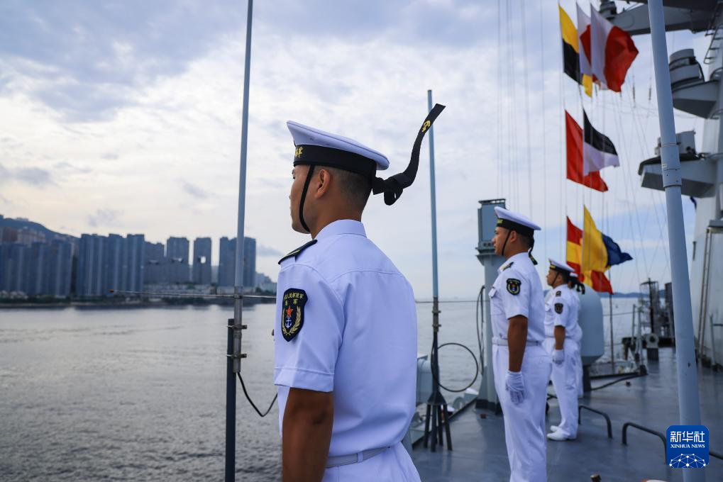 7月3日,中国海军山东舰航母编队抵达香港。这是分区列队的湛江舰官兵。新华社发(冯丽 摄)