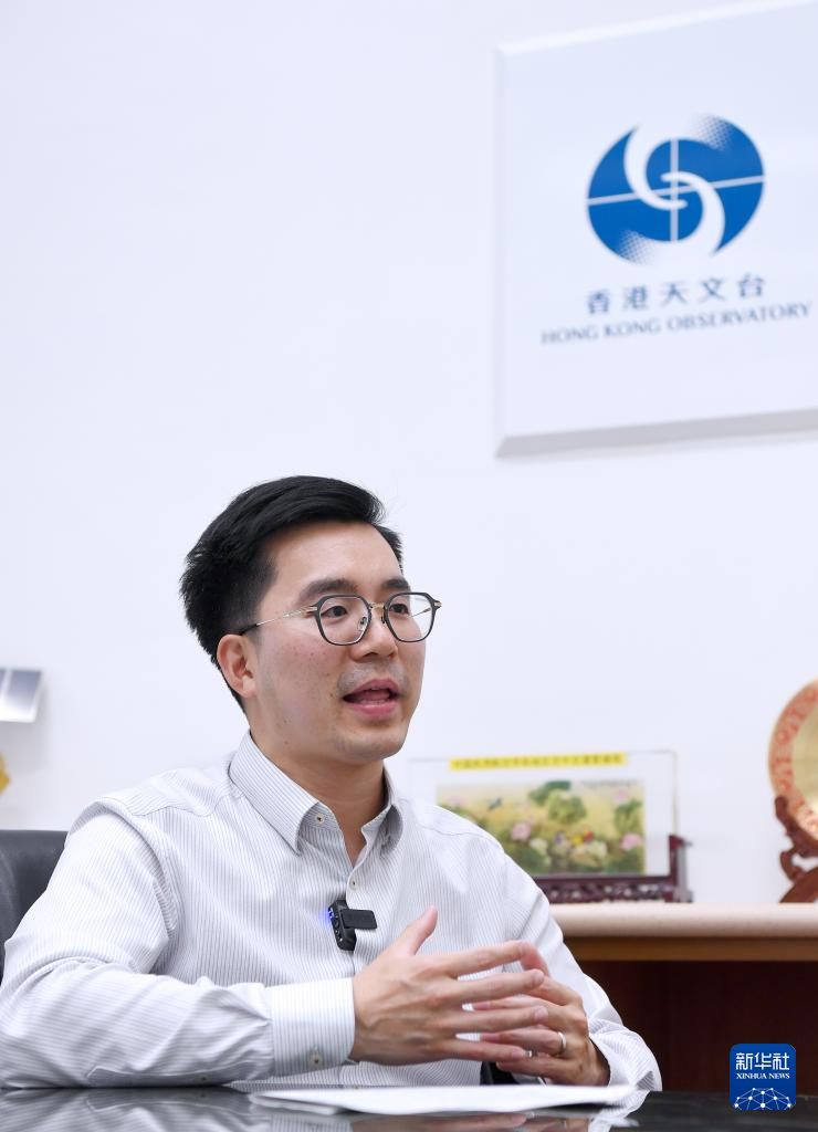 香港天文台科学主任梁浩明接受记者采访(2025年5月20日摄)。 新华社记者 陈铎 摄