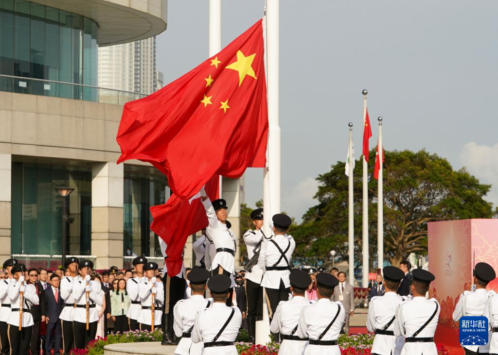 升旗仪式上午8时在金紫荆广场举行。全国政协副主席梁振英、香港特区行政长官李家超、中央政府驻港联络办主任周霁、驻港国家安全公署署长董经纬、外交部驻港公署特派员崔建春、中国人民解放军驻香港部队政治委员赖如鑫,以及香港社会各界知名人士等出席。