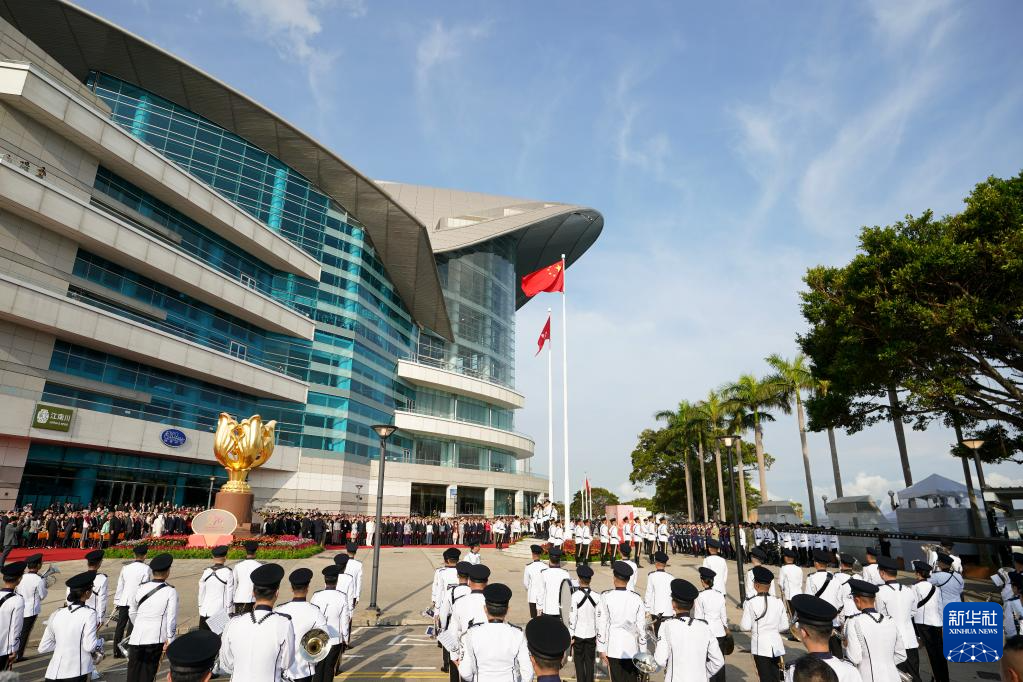 10月1日,香港特别行政区政府在金紫荆广场举行升旗仪式,庆祝中华人民共和国成立76周年。新华社发(吕小炜 摄)