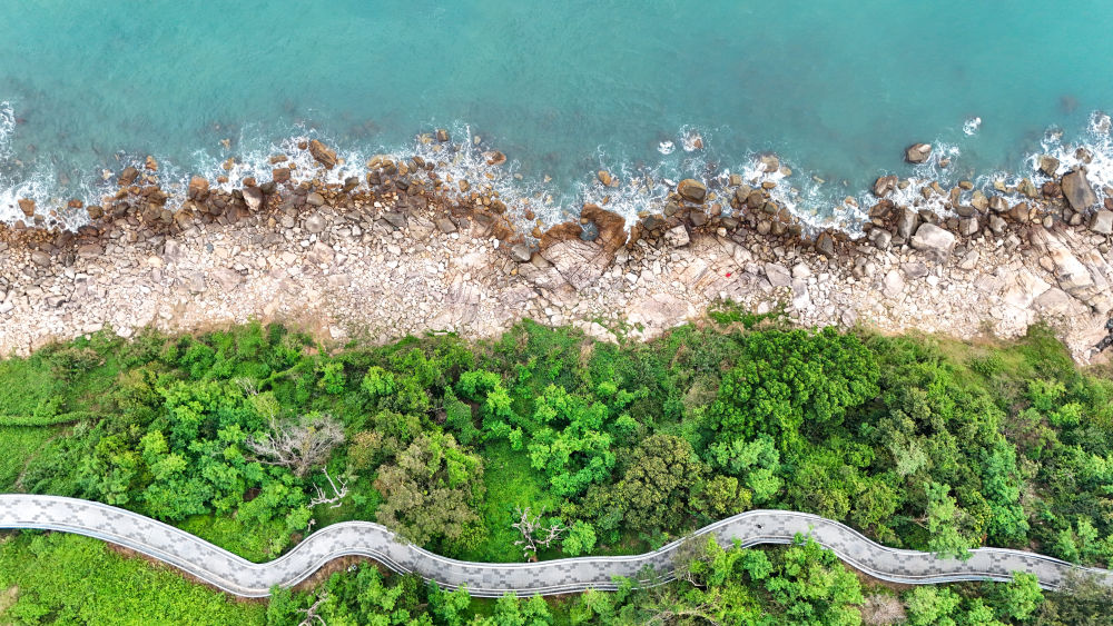 ↑2025年10月29日,黄蕴瑶在深圳盐田海边骑行(无人机照片)。新华社记者 梁旭 摄