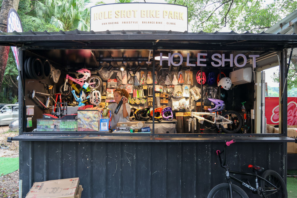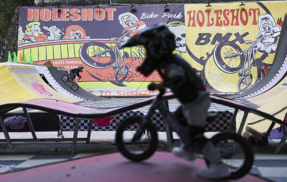 ↑2025年10月31日,黄蕴瑶在位于深圳福田区的HOLE SHOT骑行公园里工作。新华社记者 梁旭 摄