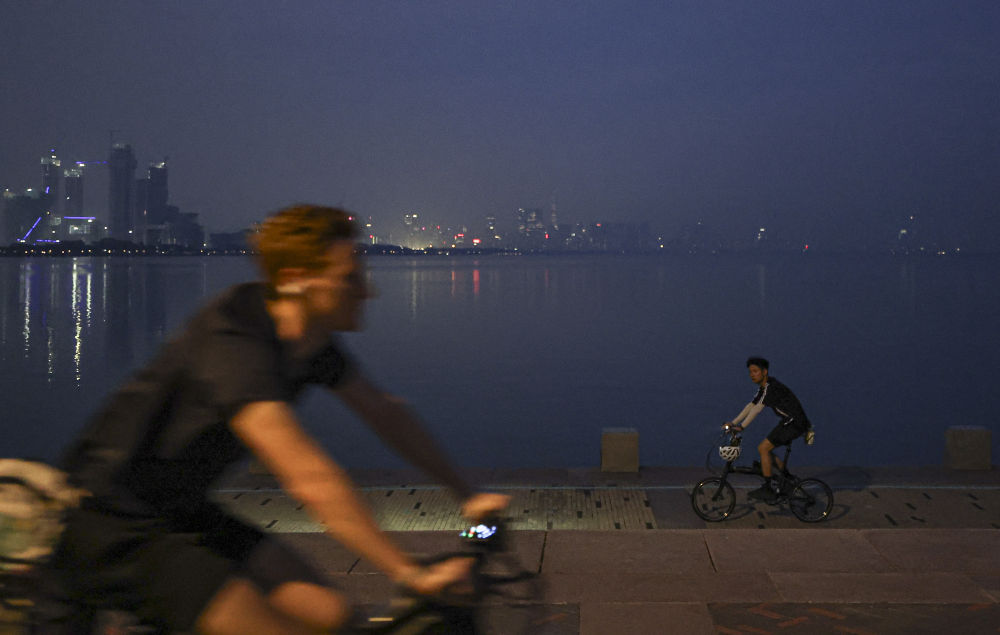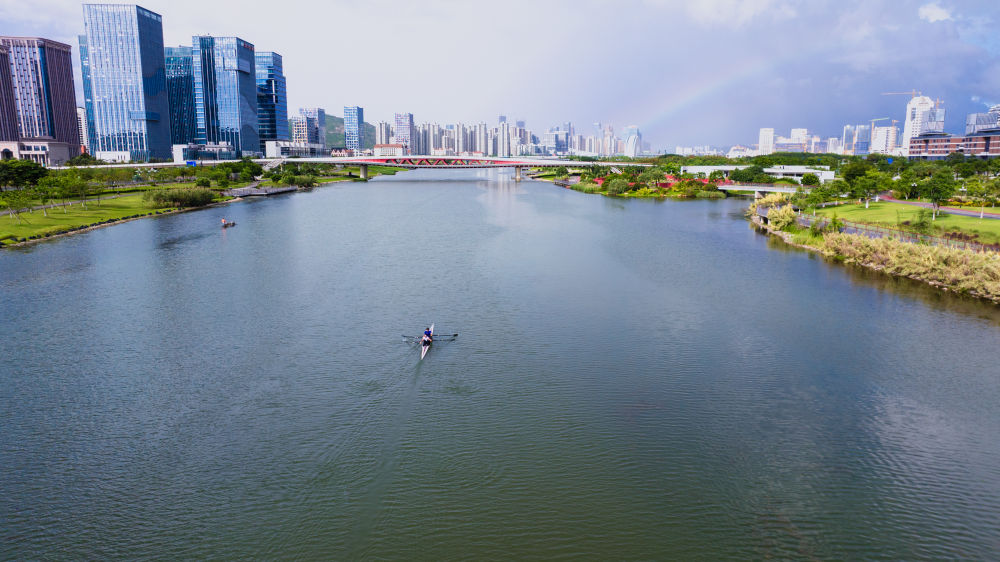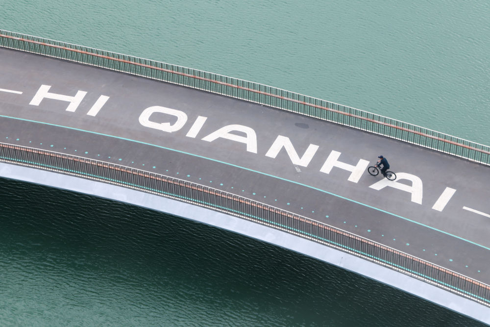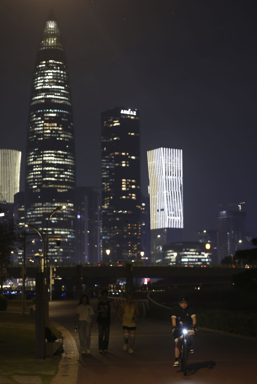 ↑2025年10月24日,市民在深圳前海骑行。新华社记者 梁旭 摄