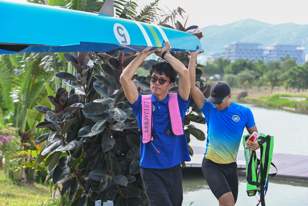 ↑2025年11月1日,来自澳门科技大学的学员在天沐河上训练。新华社记者 肖恩楠 摄