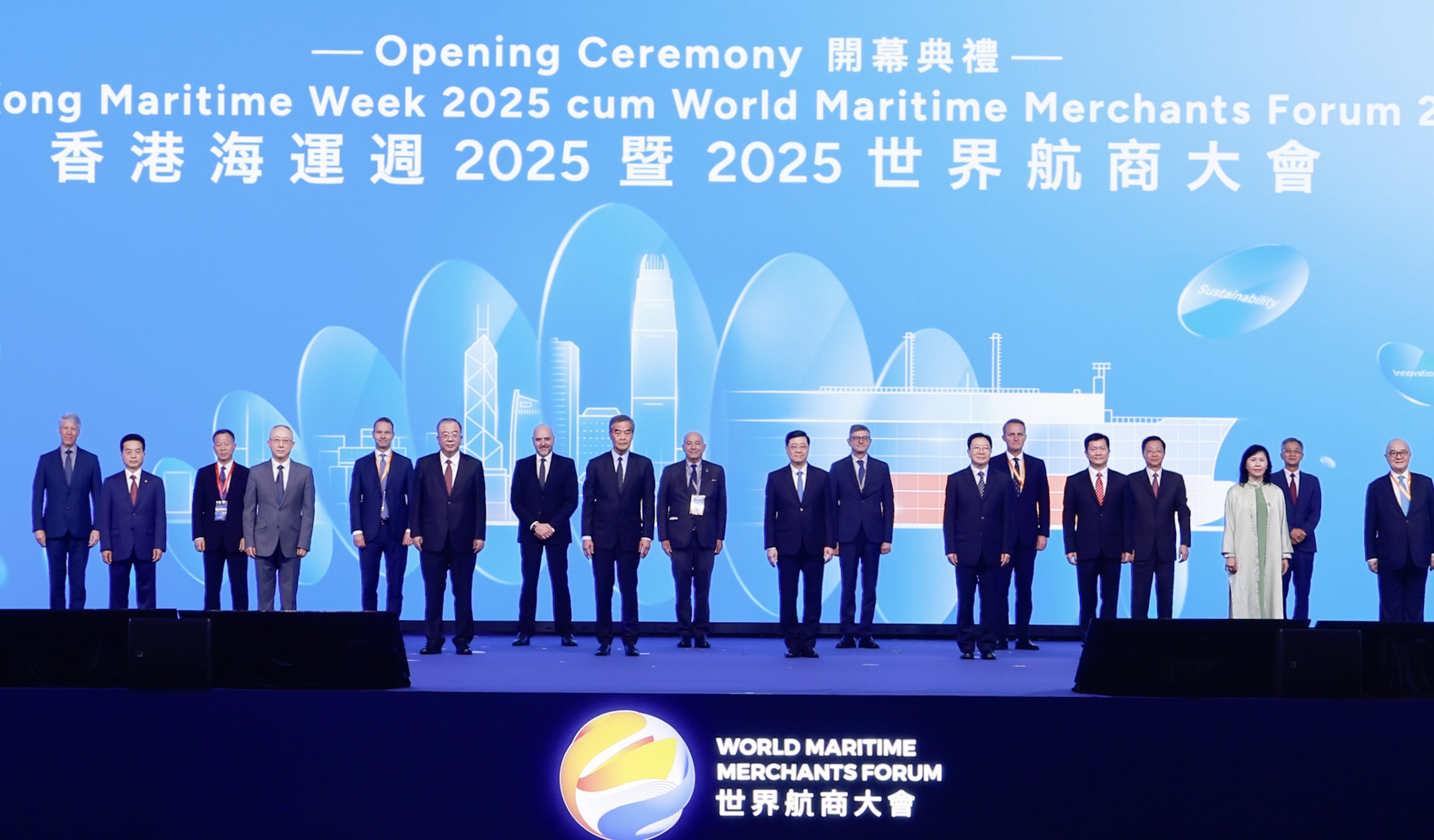 本网讯 11月17日,2025世界航商大会在港举行。全国政协副主席梁振英、香港特别行政区行政长官李家超出席并致辞。中央政府驻港联络办主任周霁出席。