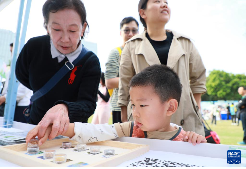 12月12日,一名儿童在观看展出的植物种子标本。新华社记者 王瑞平 摄