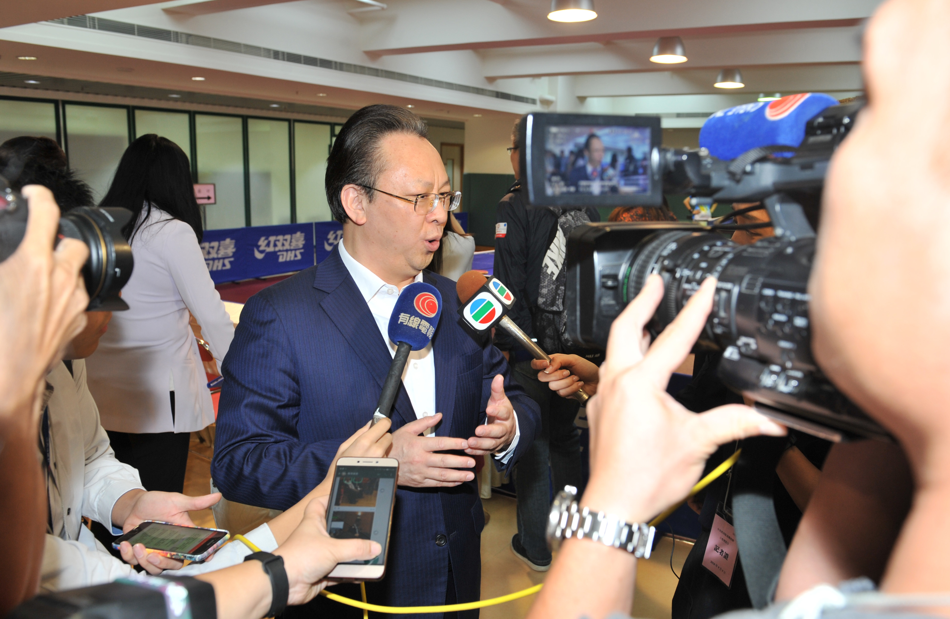 谭铁牛副主任接受媒体采访。(图片来源:中央政府驻港联络办)