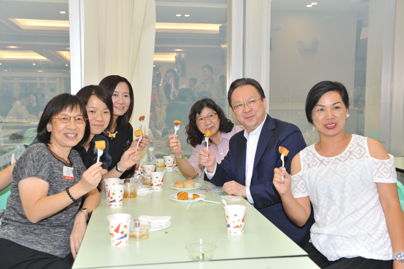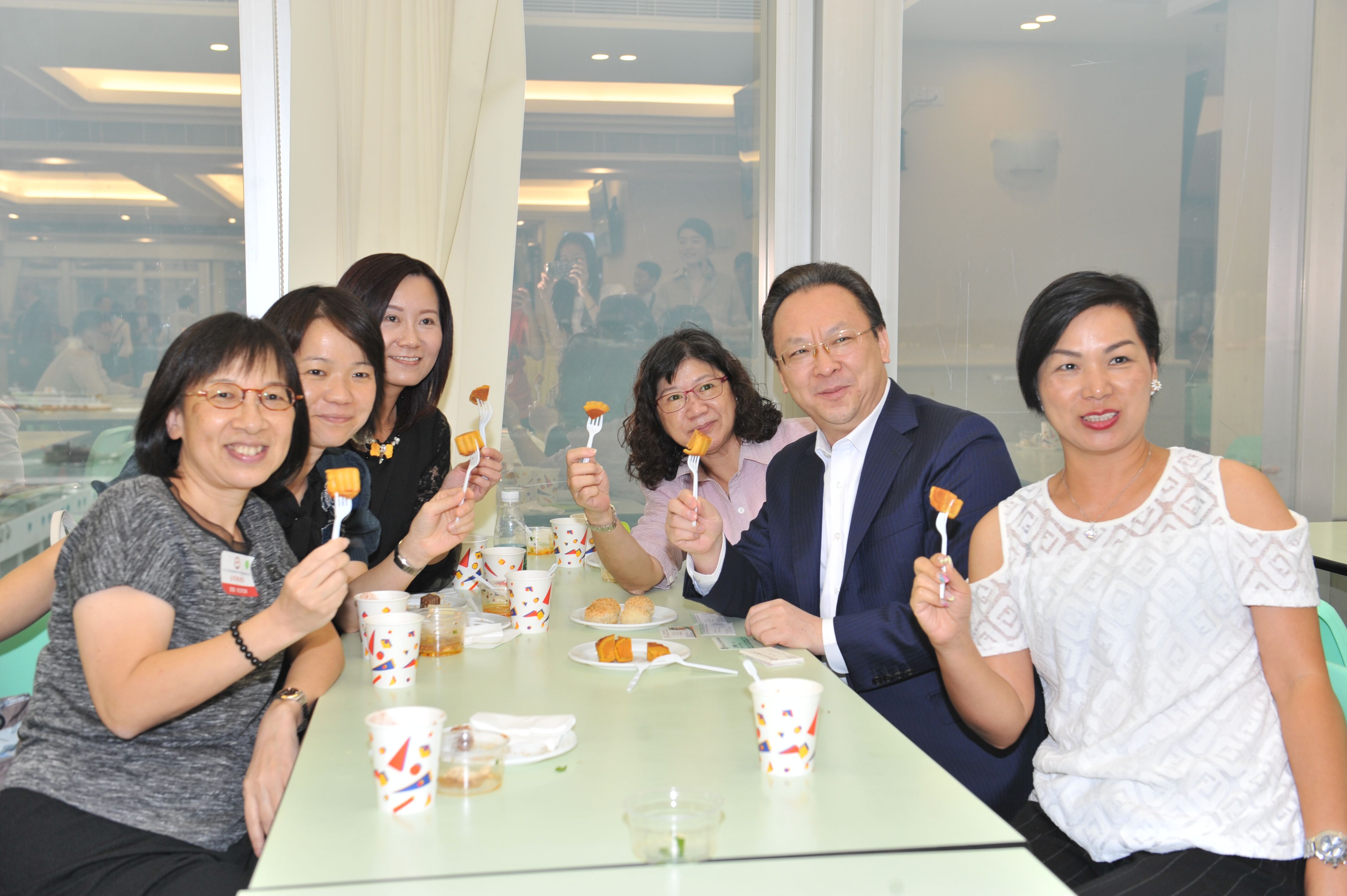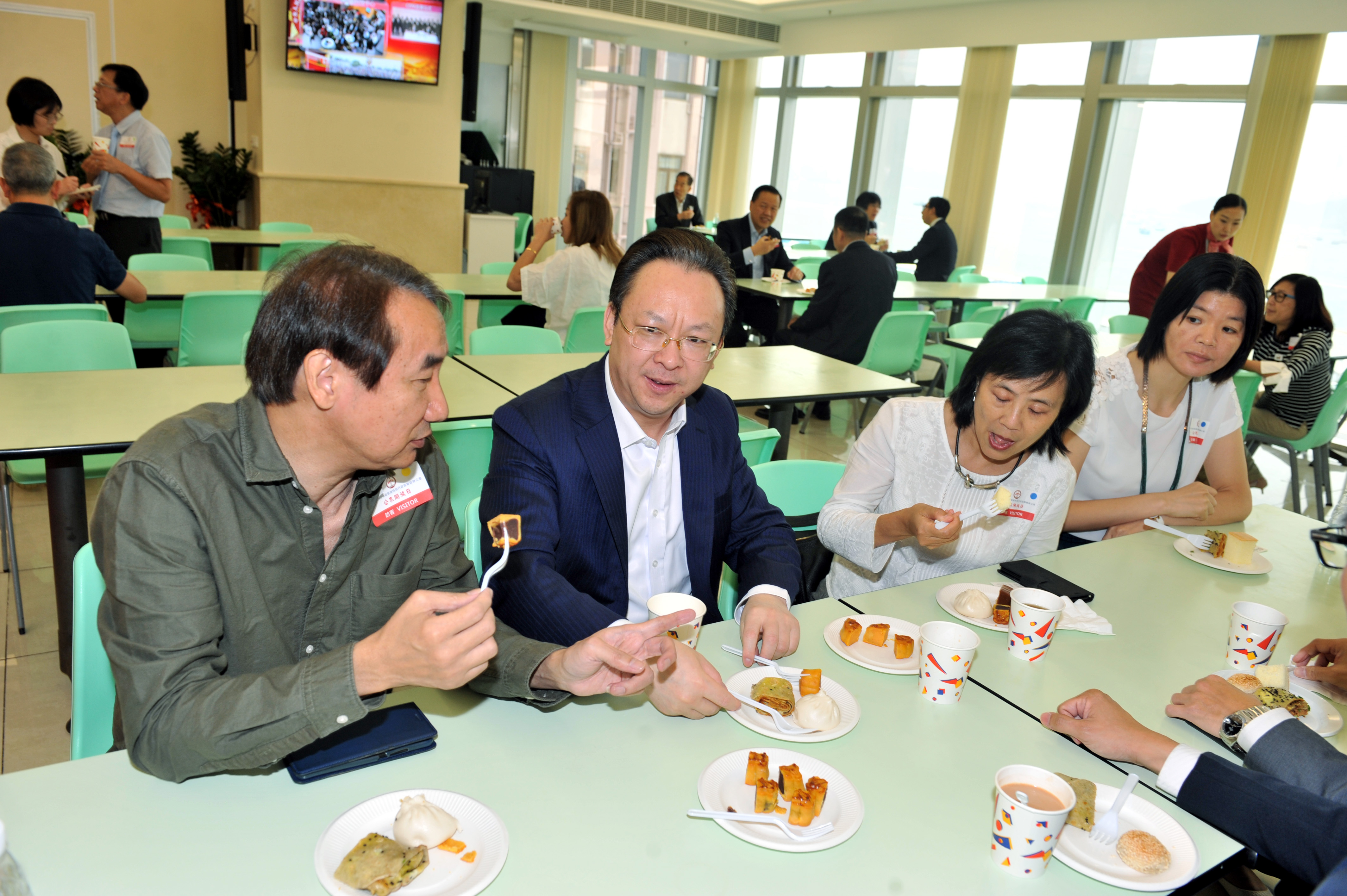 谭铁牛副主任在8楼员工餐厅与来宾交流。(图片来源:中央政府驻港联络办)