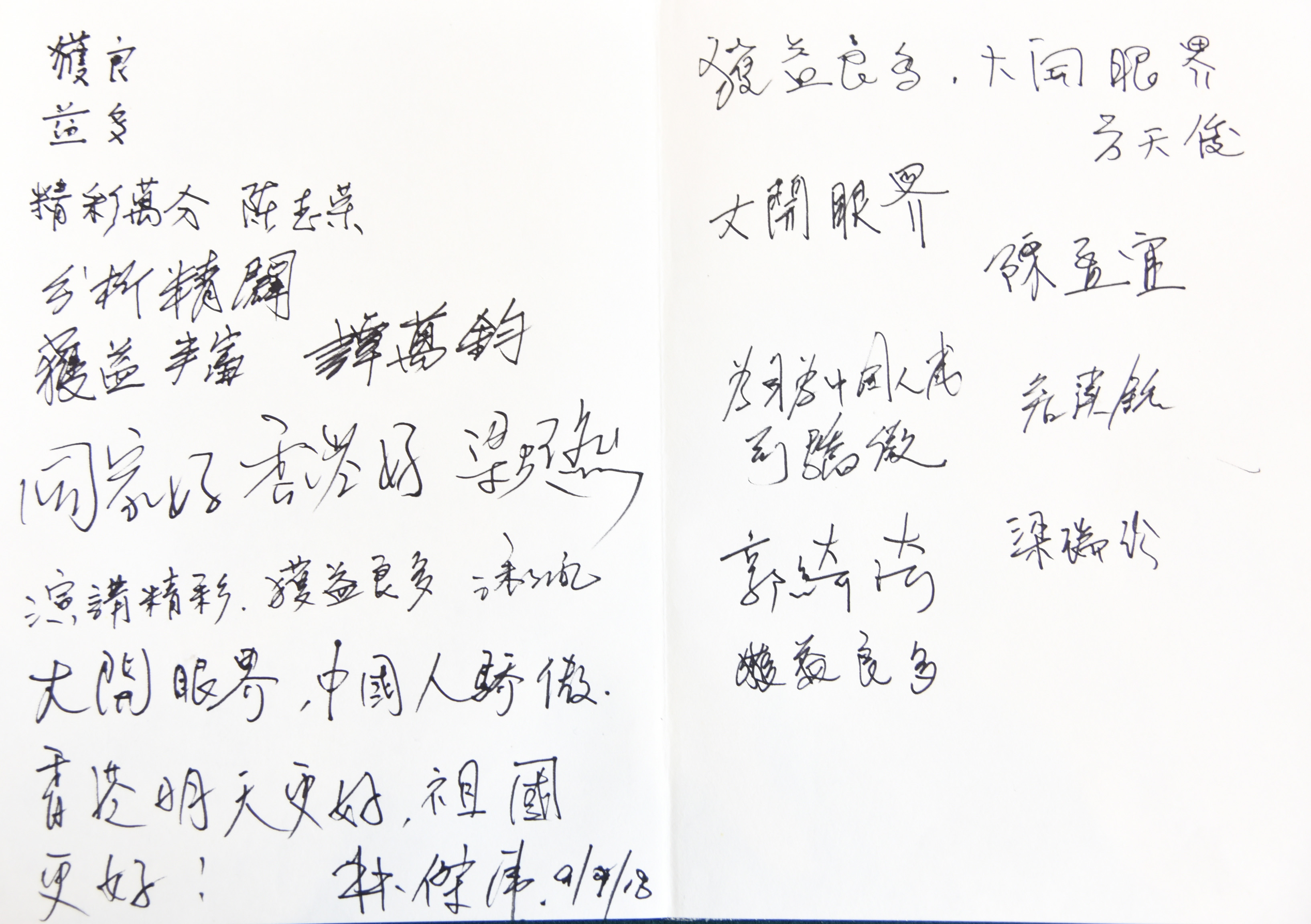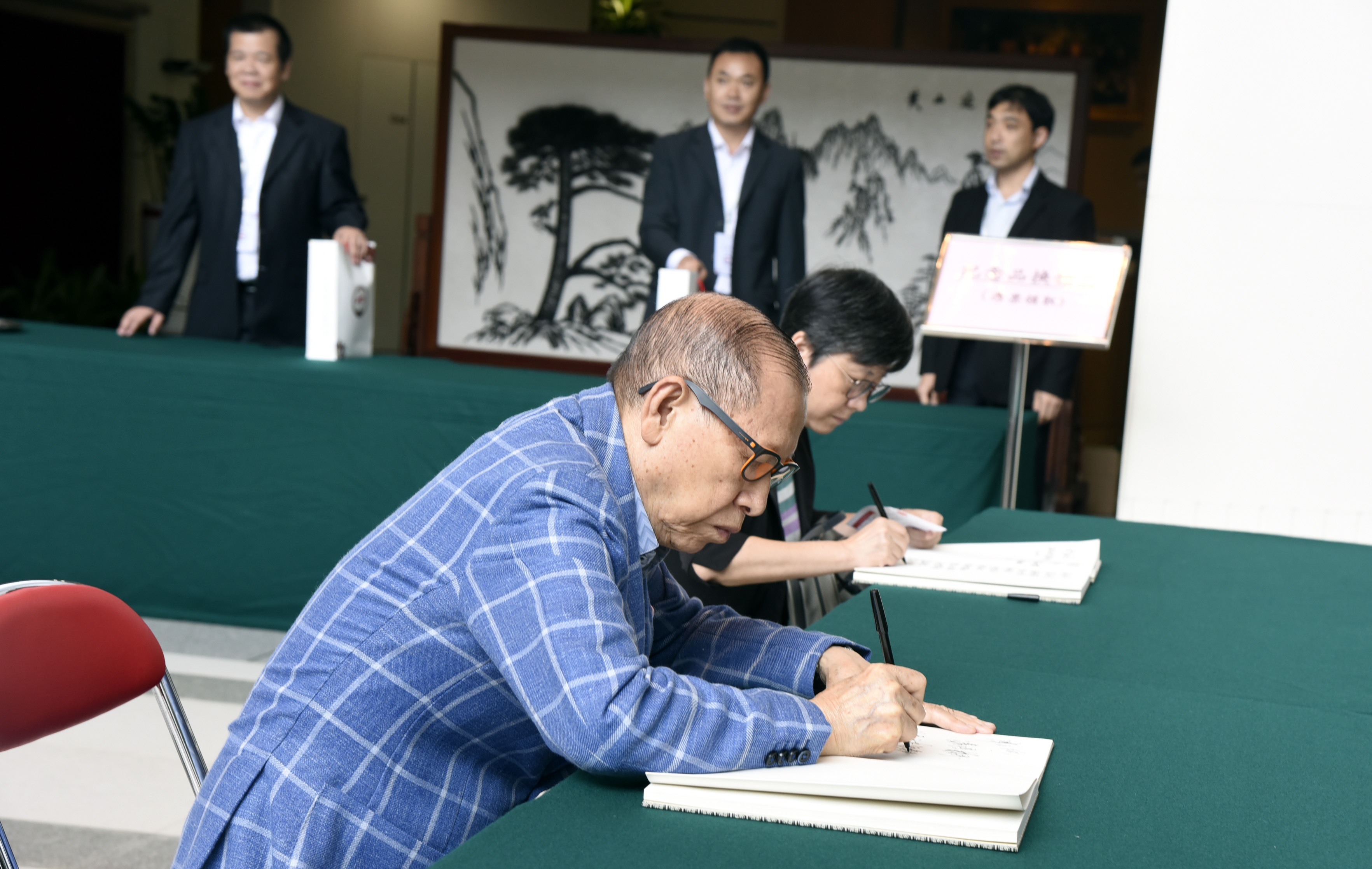 来宾在留言簿上留言。(图片来源:中央政府驻港联络办)