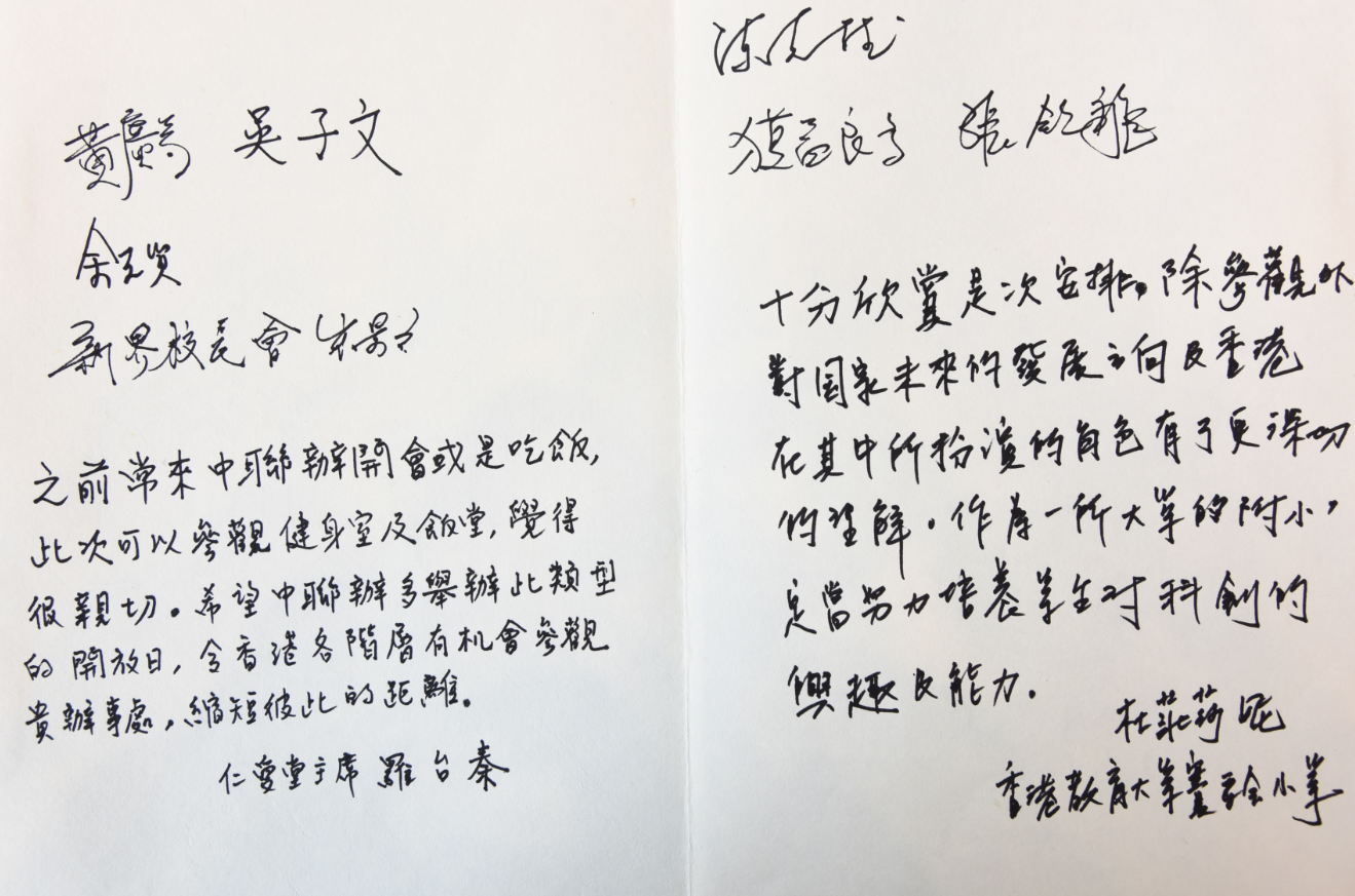 来宾认真写下参观后的感受。(图片来源:中央政府驻港联络办)