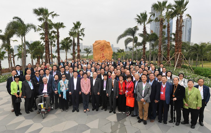 访问团参观前海深港现代服务业合作区后合影。(图片来源:香港特区政府)