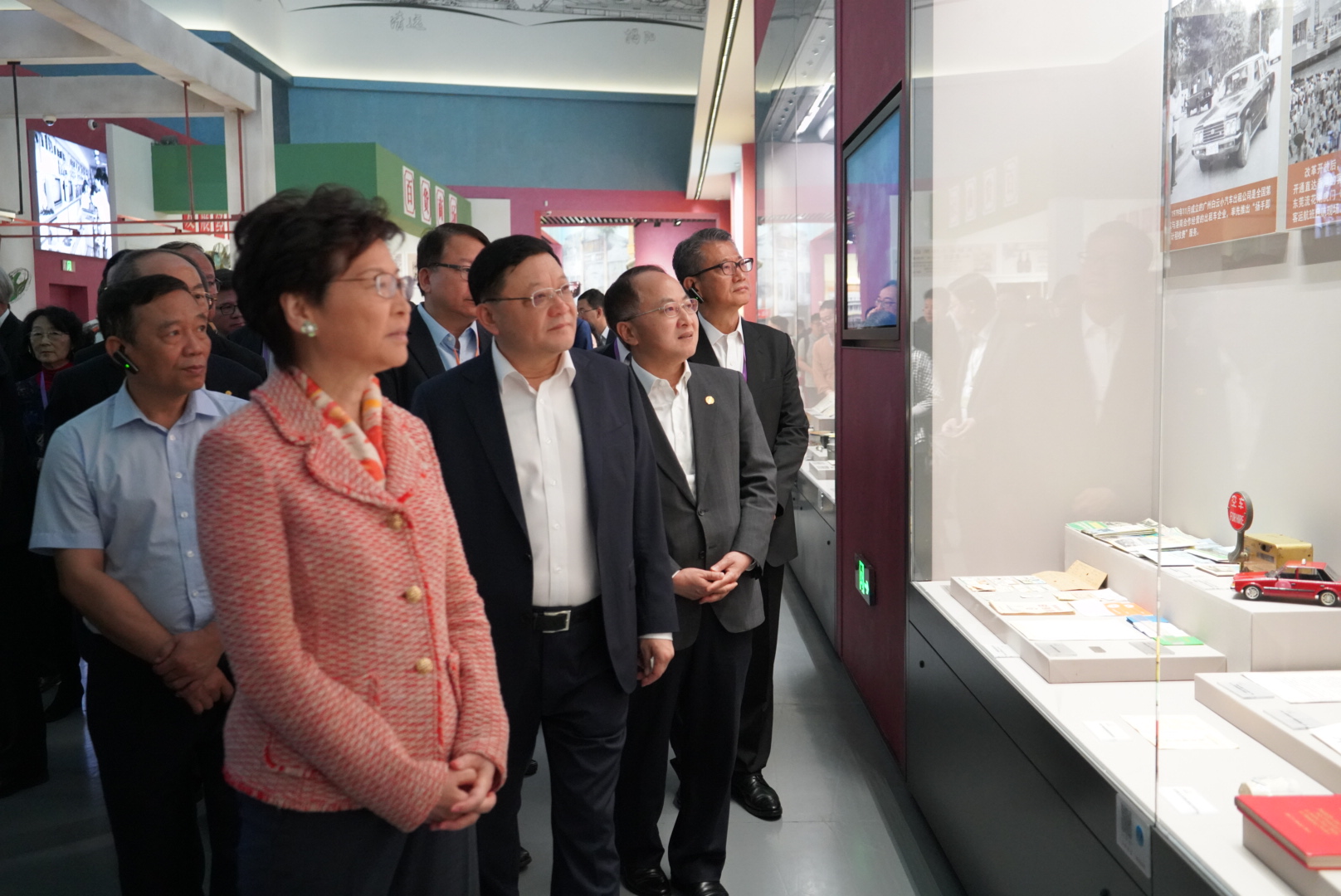王志民主任与香港特区行政长官林郑月娥、深圳市委书记王伟中等参观“大潮起珠江——广东改革开放40周年展览”。(图片来源:中央政府驻港联络办)