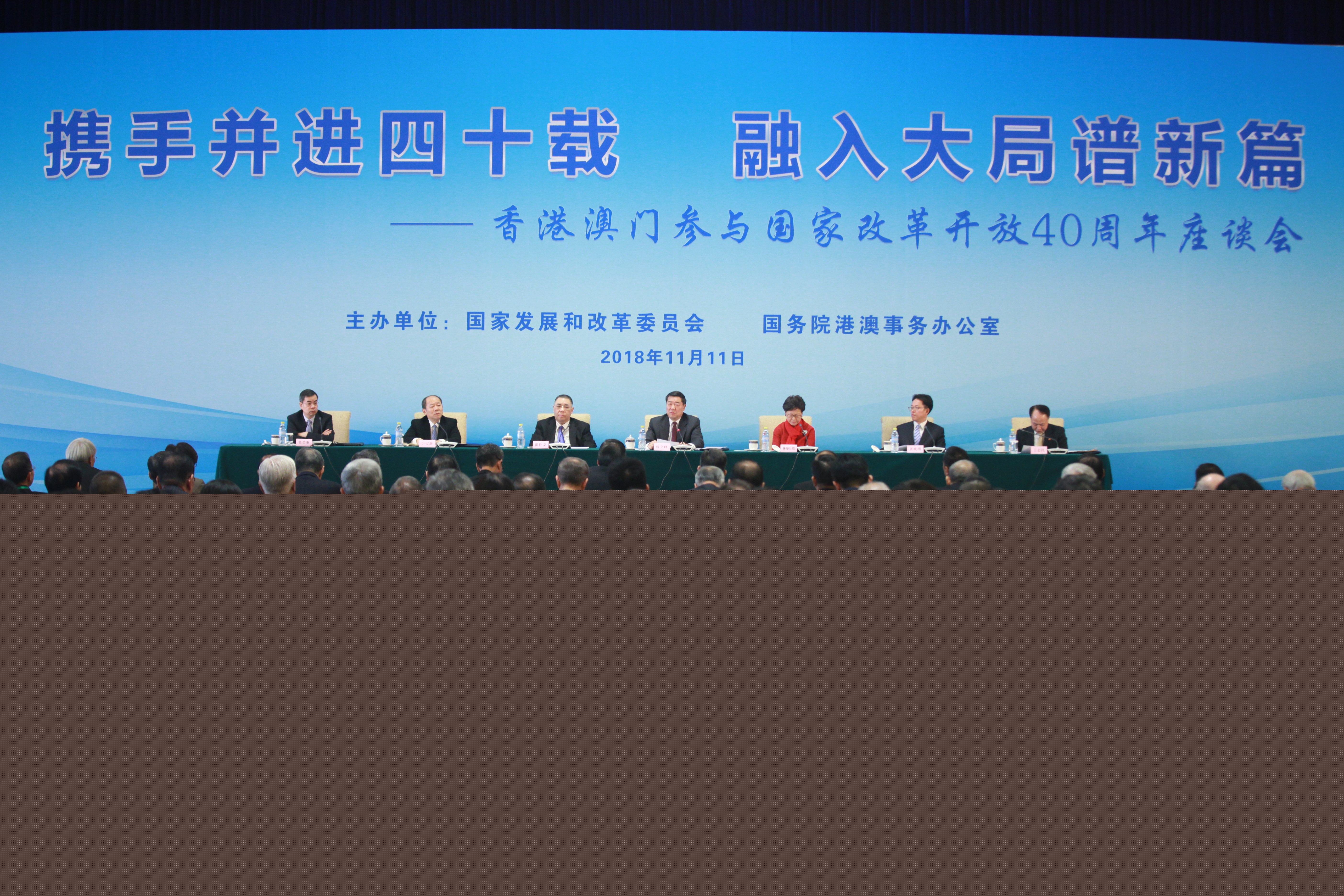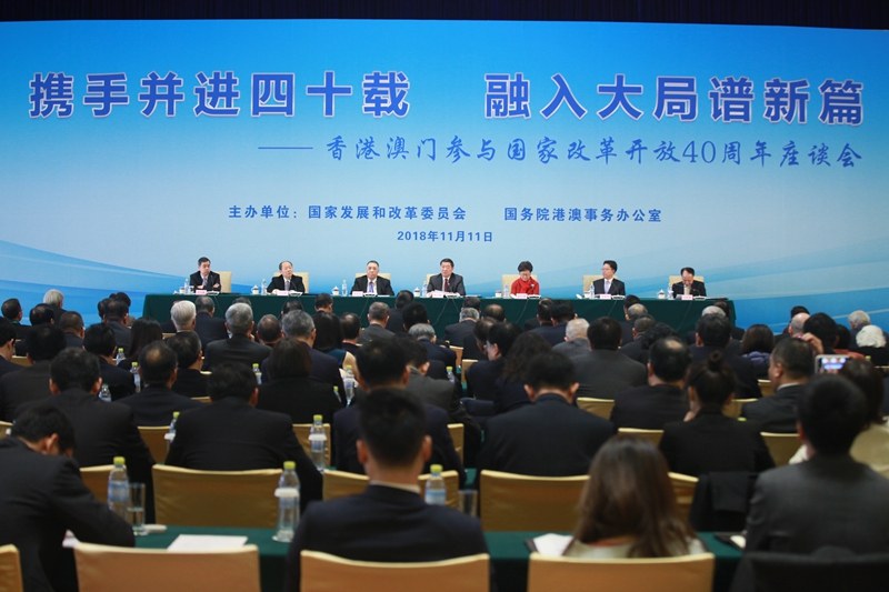 由国家发展改革委、国务院港澳办共同主办的“携手并进四十载 融入大局谱新篇——香港澳门参与国家改革开放40周年座谈会”11日在京举行。