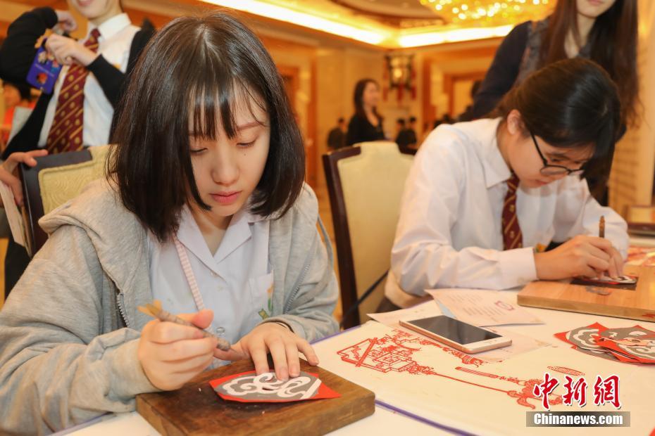 11月24日,中国非物质文化遗产泉州刻纸吸引众多学生亲手尝试,在技艺师的指导下一刀刀临摹刻出一个复杂的祥云图案。当日,中华人民共和国外交部驻香港特别行政区特派员公署举办庆祝改革开放40周年大型开放日活动,邀请来自逾50所学校的1800多名师生及青年参加,以帮助其了解中国传统文化及外交故事。中新社记者 谢光磊 摄