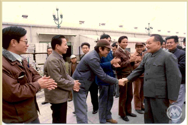 1984年1月26日,邓小平视察招商局蛇口工业区,在华益铝厂和职工亲切握手。