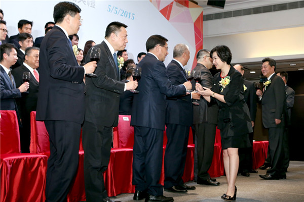 何超琼牵头创立了京澳经济文化交流促进会。图为她在成立仪式上与出席嘉宾祝酒。