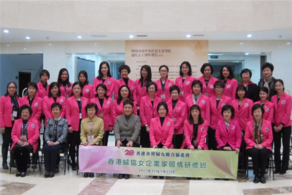 1997年何超琼加入香港妇女联合协进会。2013年她筹办了女企业家国情研修班,图为她带领首届学员到北京学习时的留影。