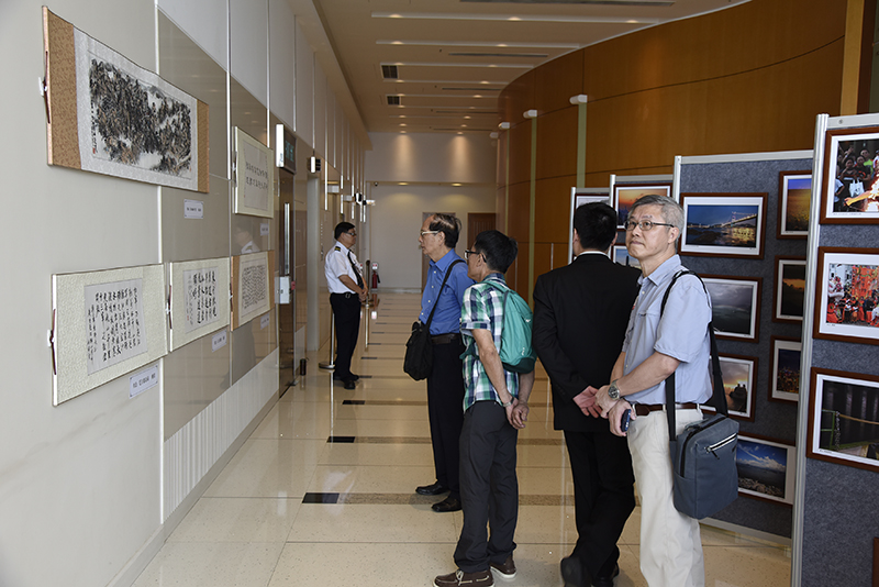 来宾观看我办员工书画作品展。(图片来源:中央政府驻港联络办)