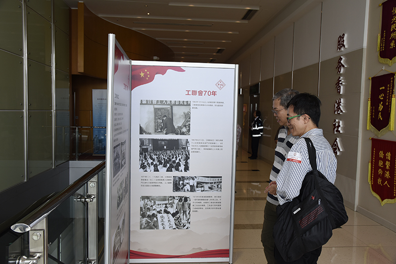来宾观看工联会70周年展。(图片来源:中央政府驻港联络办)