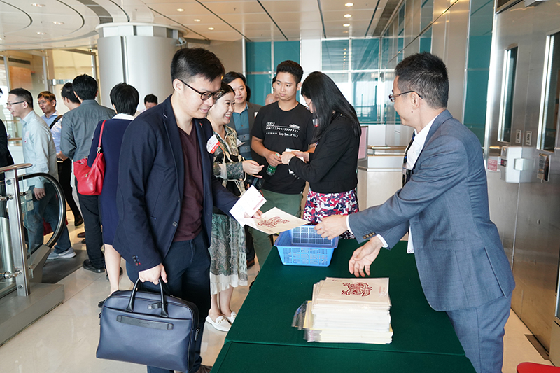 来宾领取纪念品。(图片来源:中央政府驻港联络办)