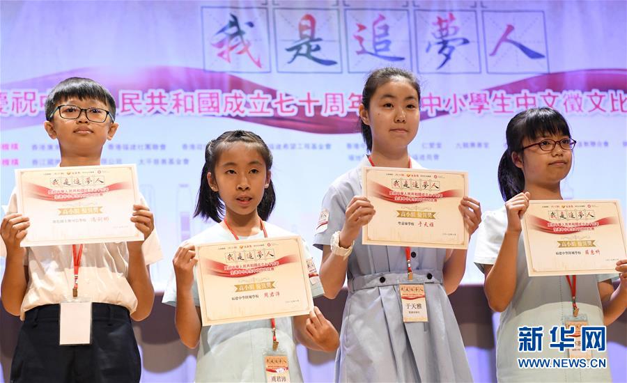 由香港大公文汇传媒集团主办的“我是追梦人?庆祝中华人民共和国成立七十周年全港中小学生中文征文比赛颁奖典礼”10月19日在香港福建中学礼堂举行。60位中小学生的优秀作品获奖,300余名社会各界代表出席典礼。