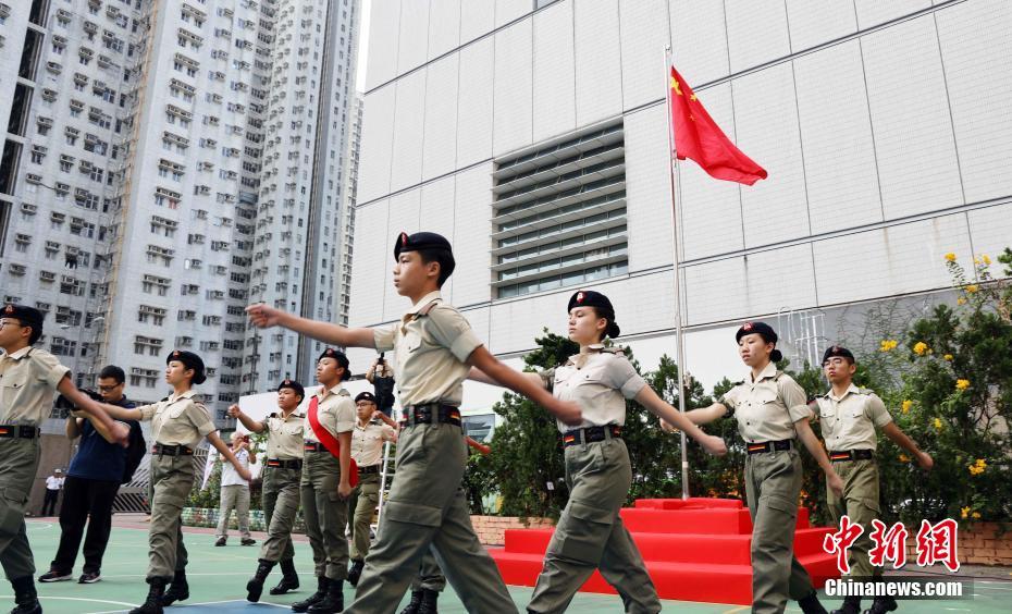 11月3日,“千人贺华诞 龙跃健步行”在香港培侨小学举行起步礼。图为升旗仪式。