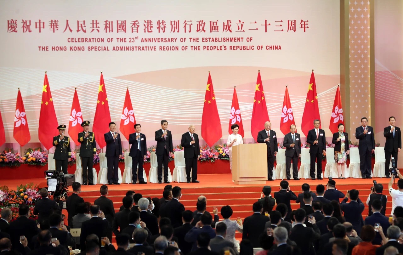 升旗仪式结束后,香港特区政府在香港会议展览中心举行庆祝酒会。