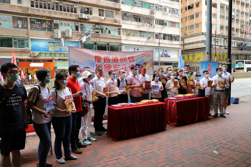 香港广东社团总会则在全港十八区,摆放了二百多个宣传站点,向市民介绍“香港国安法”的益处。香港广东社团总会主席龚俊龙表示,中央这次果断出手是非常合理的,香港国安法打击的是极少数的勾结国外势力、颠覆国家安全的分裂分子,对绝大多数奉公守法市民而言是极大的帮助。