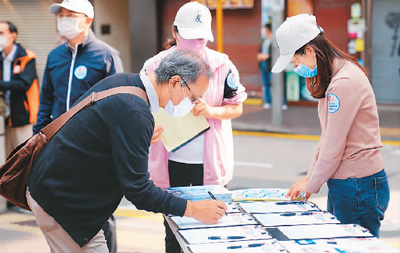 港区省级政协委员联谊会连日来在各区共开设街站300个,向街坊讲解、派发宣传单,每天收到上万个签名。