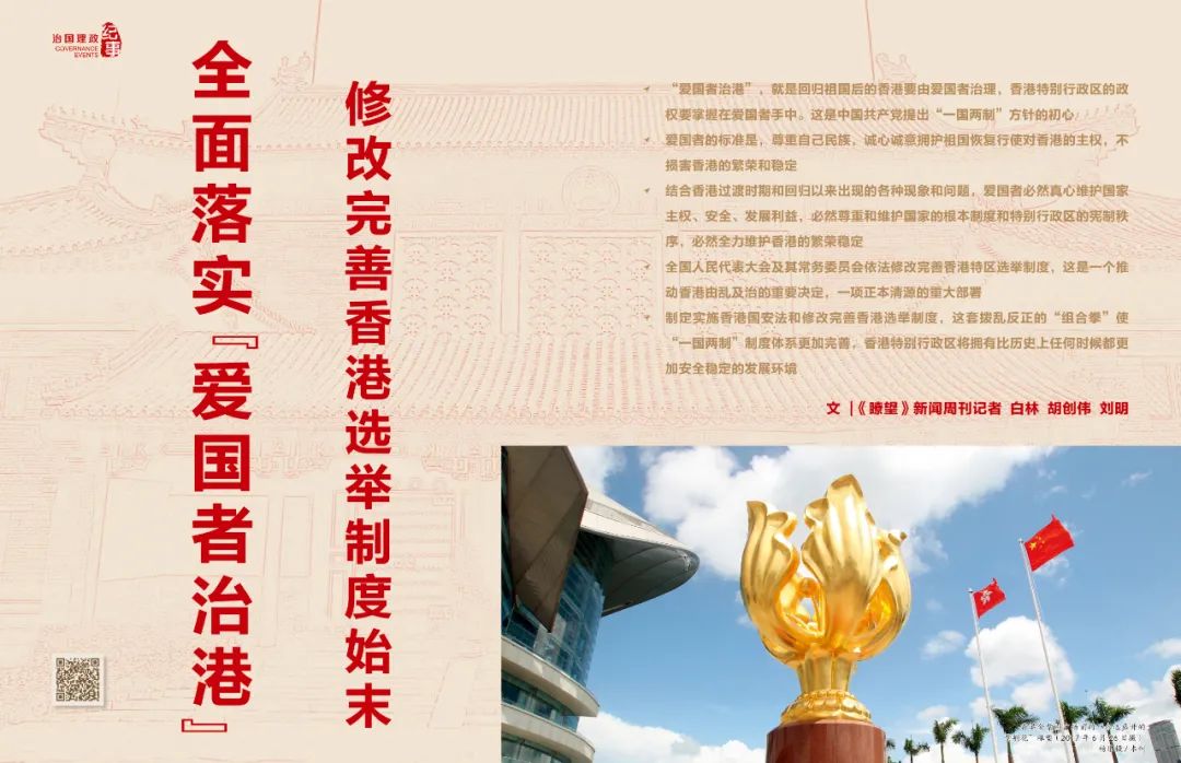 2021年3月,为顺应推进“一国两制”事业的时代呼唤和落实党对完善“一国两制”制度体系提出的明确要求,最高国家权力机关及其常设机关——全国人民代表大会及其常务委员会依法修改完善香港特区选举制度,堵塞反中乱港分子利用选举进入特区管治架构的制度漏洞,从制度机制上全面贯彻、体现和落实“爱国者治港”原则,建立一套符合“一国两制”制度体系和香港实际情况的新的民主选举制度。