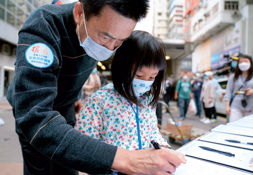 自全国人大作出完善香港特区选举制度的决定后,很多香港市民自发前往“香港各界撑全国人大决定完善选举制度连线”在全港各区摆设的街站或通过联署网页,签名支持,表达盼望香港重回正轨、长治久安的心声。从3月11日至21日,短短11天,就收集到了238万多个有效签名。此外,香港紫荆研究院的民调显示,约七成市民认为完善选举制度增强了港人对香港前景的信心。