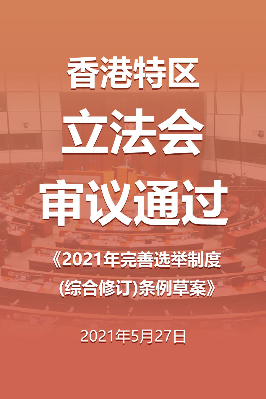 今年3月11日,全国人大高票通过完善香港选举制度相关决定;3月30日,全国人大常委会通过香港基本法附件一和附件二修订案。4月13日,特区政府将条例草案刊宪,并于次日提交立法会进行首读及二读。