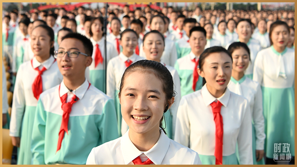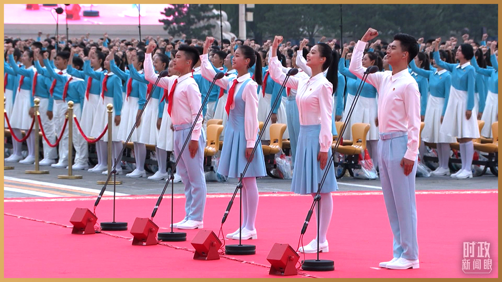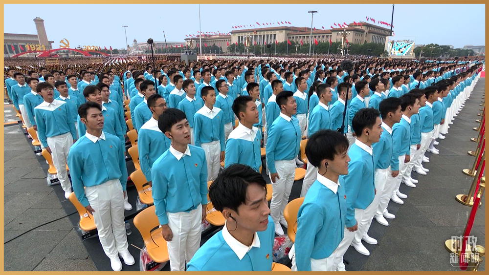 △庆祝大会现场的共青团员和少先队员代表(总台记者 孙楠 摄)
