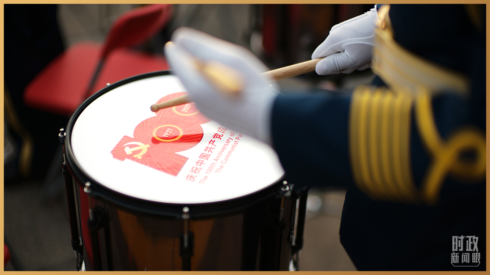 △鼓面上带有建党百年庆祝活动标识(总台央视记者 彭汉明 摄)