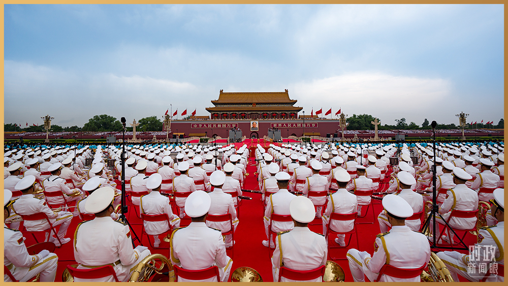 △中国人民解放军联合军乐团静待演奏开始。(总台记者 廖江衡 摄)