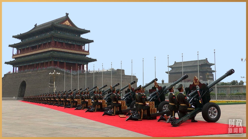 △庆祝大会上,100响礼炮响彻云霄。