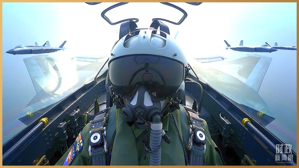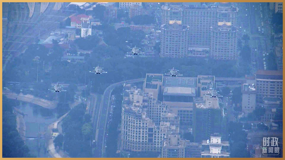 △15架歼-20飞机组成3个梯队,飞过天安门广场。