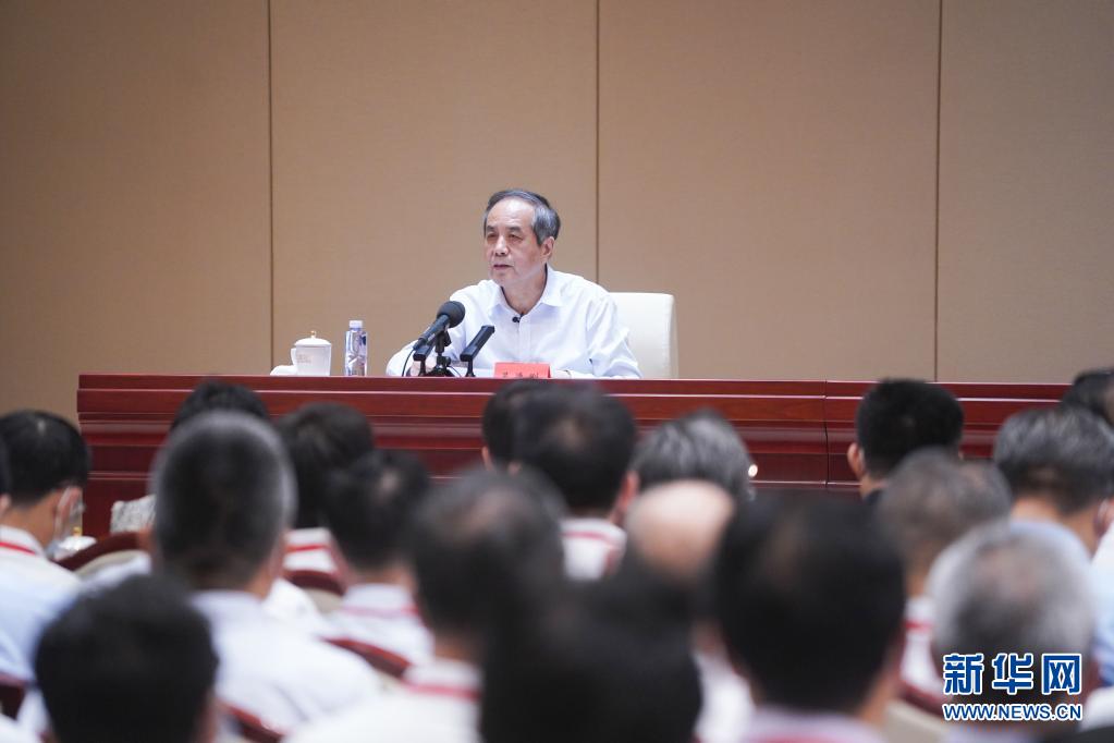 7月7日,党史学习教育中央宣讲团成员王伟光在第二场报告会上作宣讲报告。(新华社记者 陈晔华 摄)