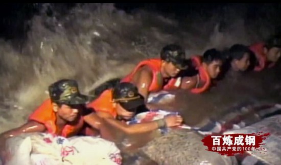 危急关头,30多万人民解放军和武警部队官兵参加抗洪斗争,用血肉之躯筑起了冲不垮的坚强大堤。