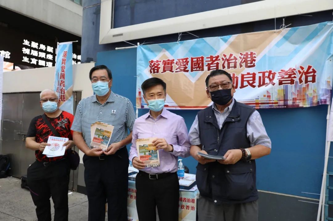 旅游界界别分组选委11日在中环中旅社外的街站向社会介绍新的选举制度。香港旅游业议会主席黄进达表示,香港市民当下需要宁静安稳的生活,“爱国者治港”正是以此作为目标,而这次选举增加了不少界别分组,吸纳了包括基层在内的多种声音,助治港者制定政策时更以市民为重。